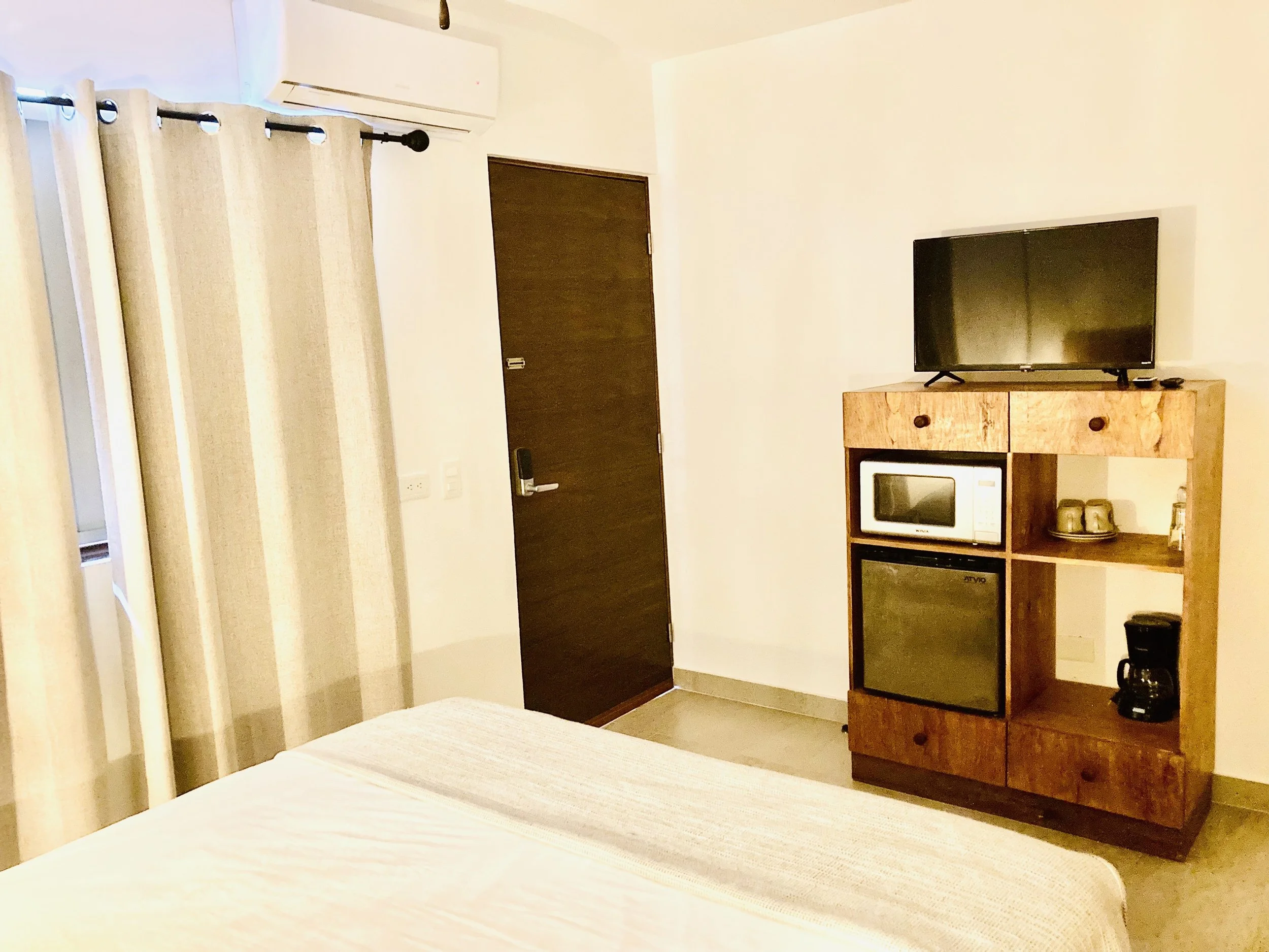 For delightful breakfasts or any other meals, a toaster, waffle maker, drip coffee machine, and an electric kettle is at your disposal. Stay refreshed with our water dispenser, featuring a 20L tank that provides both cold and hot water options.