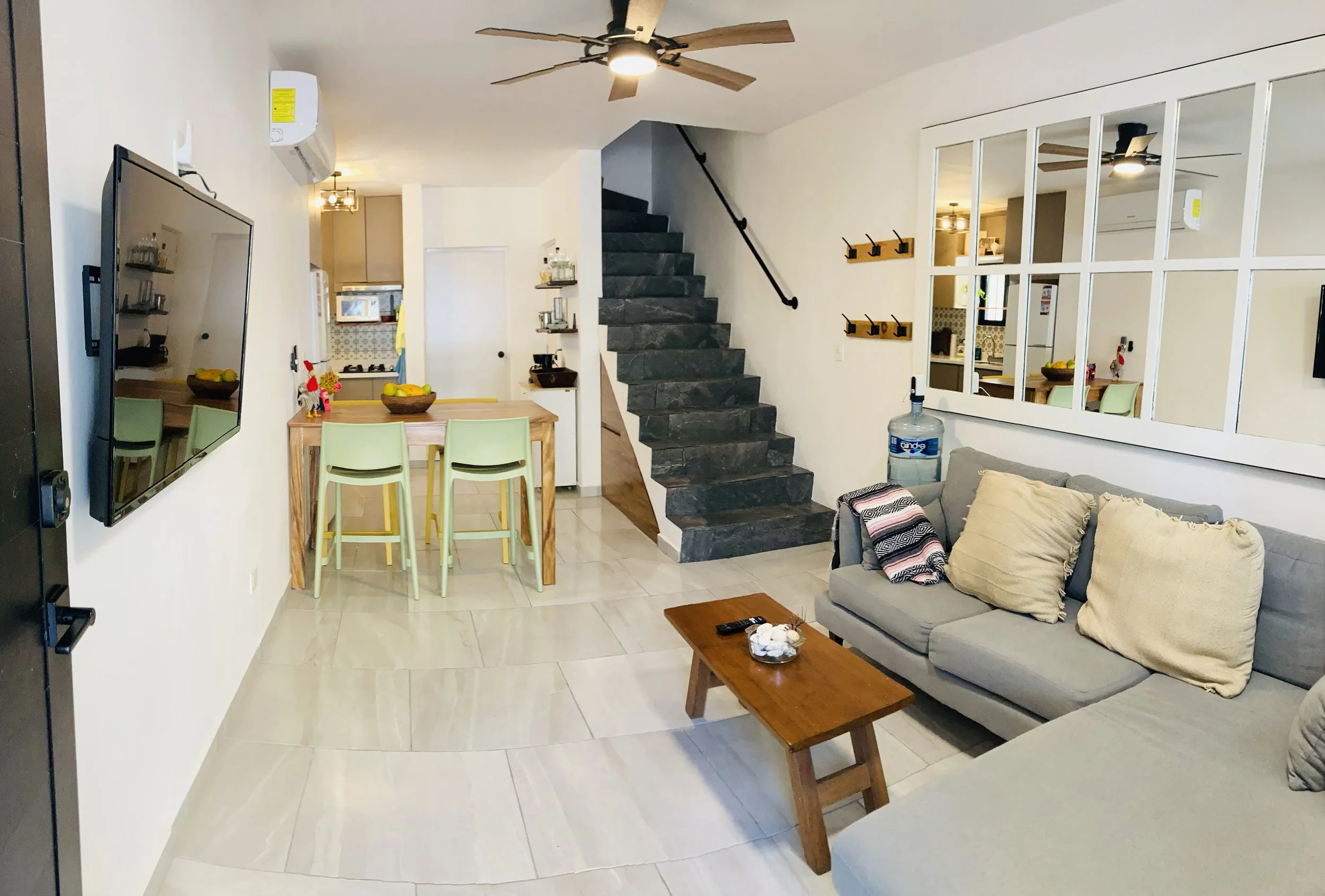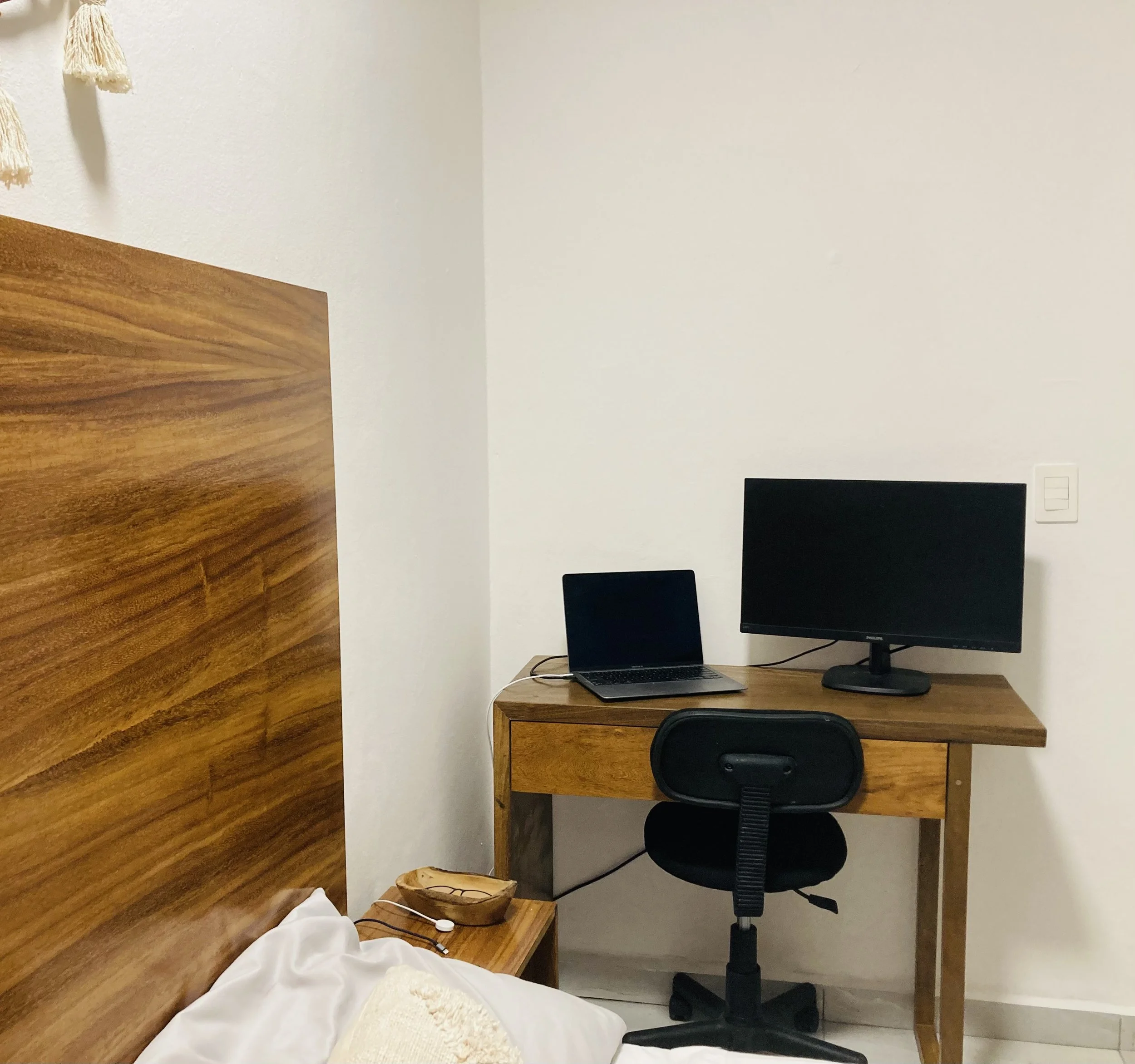 Stay comfortable with air conditioning and ceiling fans in every room. Find a dedicated workspace with desks in the bedrooms, work from the open living room, the back patio or the street side balcony.