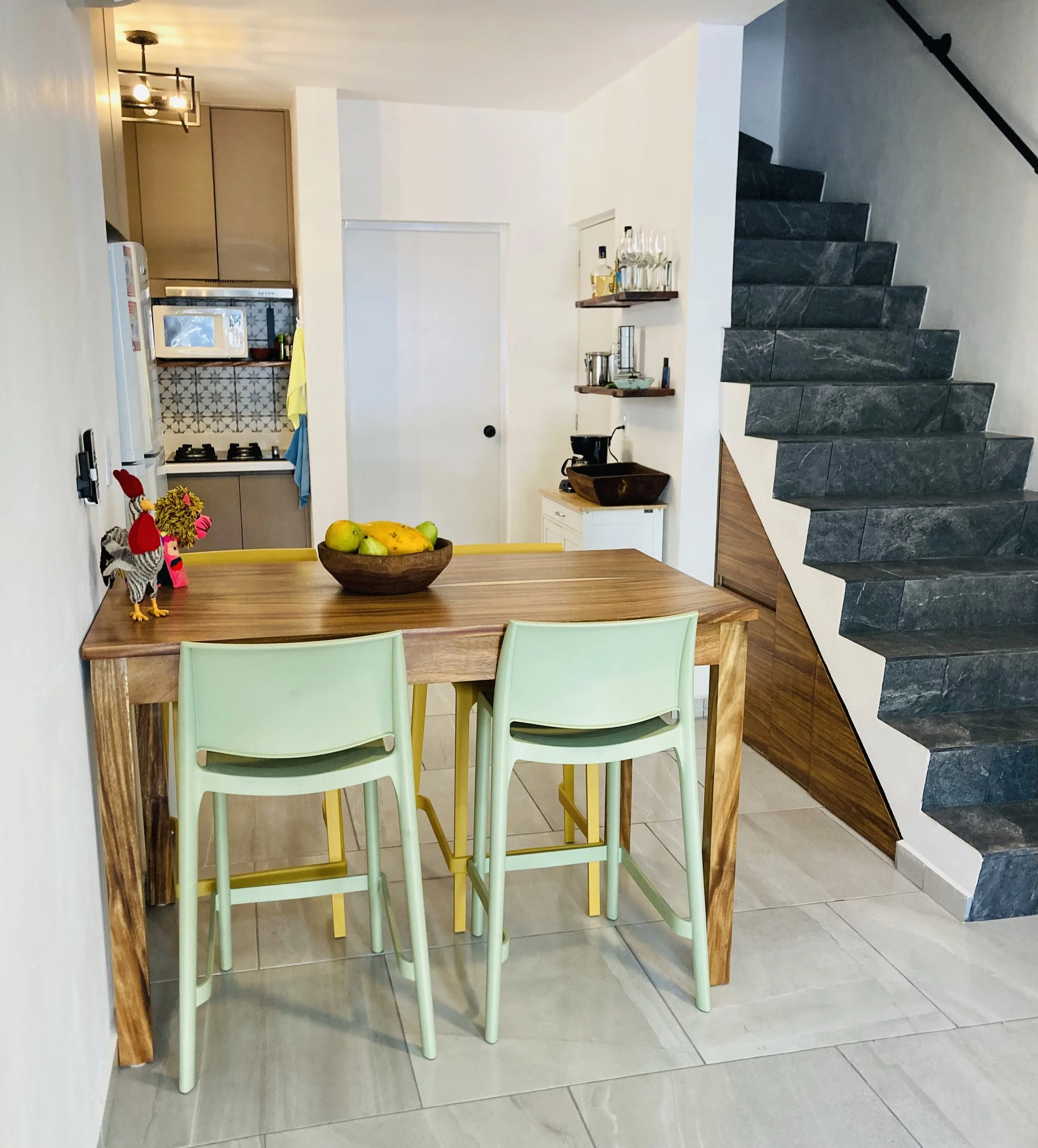 Freshly renovated, with new kitchen, new tile work in both floors and bathrooms, large 2 bed/2 bath apartment with living room, dining room, kitchen and one of the bedroom and bathroom on the ground floor, and the second bathroom and bedroom on the first floor, with balcony on Calle 30.