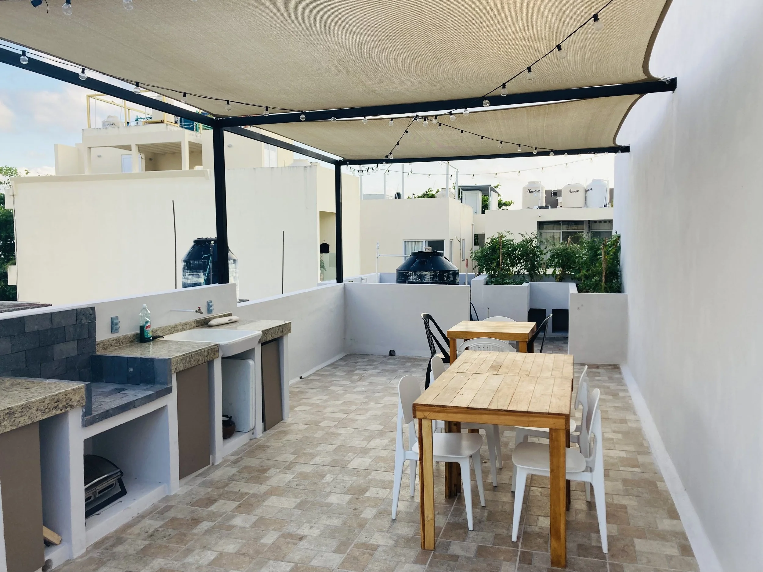 Small gas grill and charcoal grill, tables and sunshade on the rooftop (shared with 3rd floor guest)