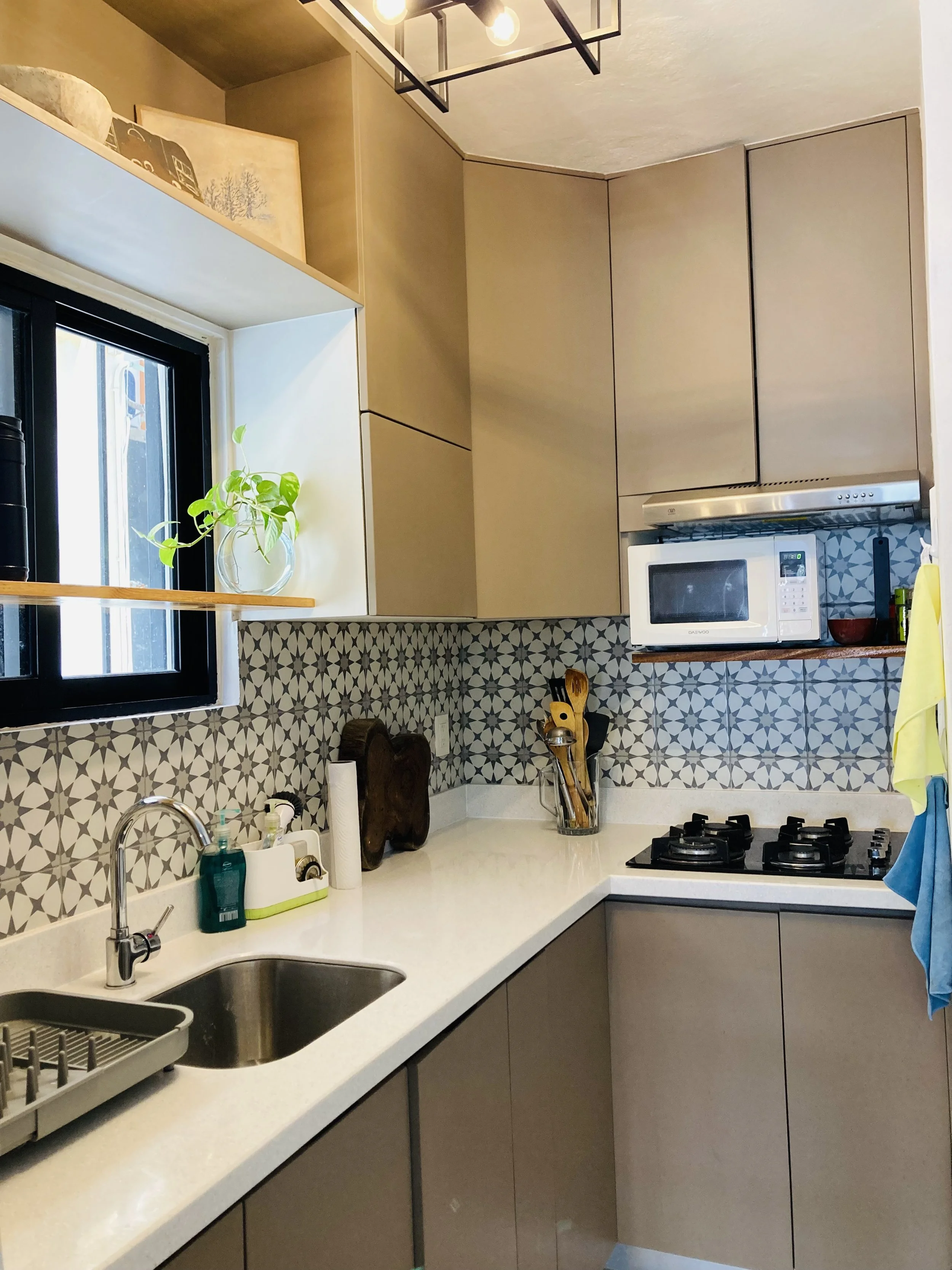 Our well-equipped kitchen features a gas stove, along with essential appliances such as a microwave, blender and rice cooker. Feel free to utilize our large selection of pots and pans.